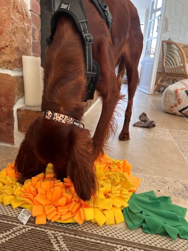 Ce tapis en tissu comporte de nombreuses cachettes où dissimuler des friandises. Votre chien doit utiliser son flair pour les retrouver.